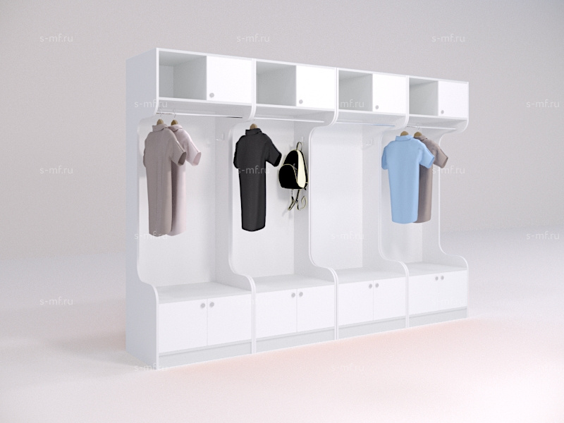 - штанга для вешалок и два двойных крючка по бокам шкафчика