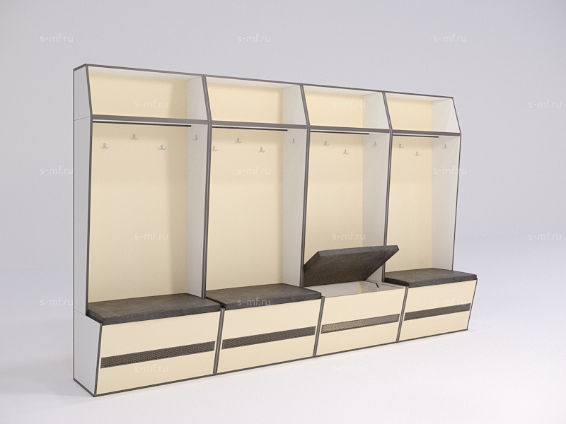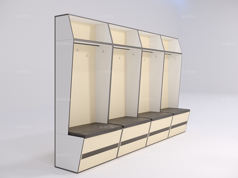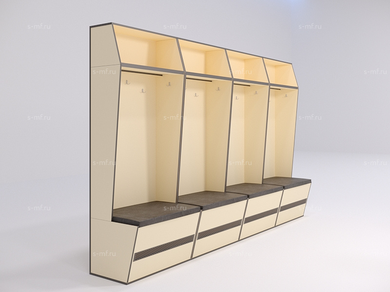 Конструкция шкафчика максимально продумана: размеры учитывают потребности хоккеистов , шкафчик оснащён ящиком для вещей с откидывающимся мягким сидением, вентиляционные отверстия обеспечивают циркуляцию воздуха. Такие шкафчики можно дополнить эффектной светодиодной подсветкой, мягкой спинкой, личным сейфом.