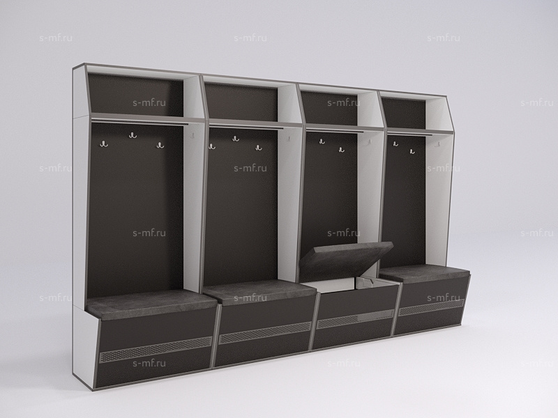 Конструкция шкафчика максимально продумана: размеры учитывают потребности хоккеистов , шкафчик оснащён ящиком для вещей с откидывающимся мягким сидением, вентиляционные отверстия обеспечивают циркуляцию воздуха. Такие шкафчики можно дополнить эффектной светодиодной подсветкой, мягкой спинкой, личным сейфом.