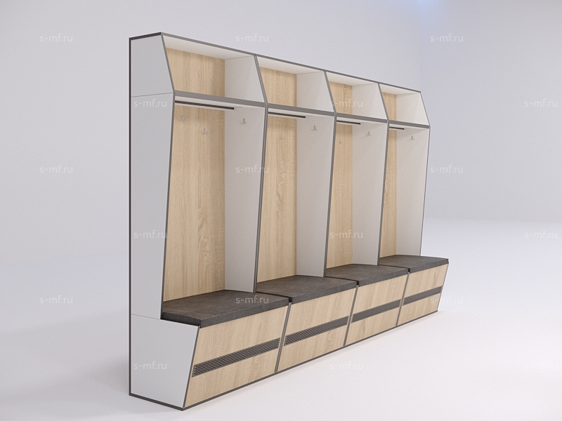 Конструкция шкафчика максимально продумана: размеры учитывают потребности хоккеистов , шкафчик оснащён ящиком для вещей с откидывающимся мягким сидением, вентиляционные отверстия обеспечивают циркуляцию воздуха. Такие шкафчики можно дополнить эффектной светодиодной подсветкой, мягкой спинкой, личным сейфом.