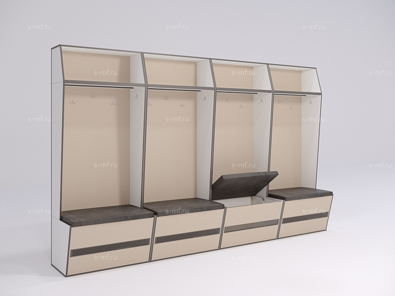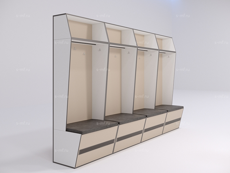 Конструкция шкафчика максимально продумана: размеры учитывают потребности хоккеистов , шкафчик оснащён ящиком для вещей с откидывающимся мягким сидением, вентиляционные отверстия обеспечивают циркуляцию воздуха. Такие шкафчики можно дополнить эффектной светодиодной подсветкой, мягкой спинкой, личным сейфом.