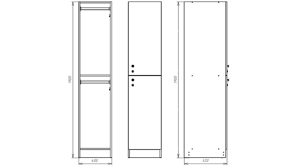 - штанга для вешалок и двойной крючок внутри шкафчика