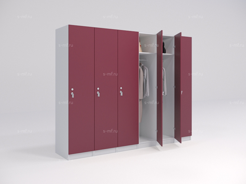 Односекционные шкафчики наиболее удобны для посетителей. Просторное внутреннее пространство создает максимальный комфорт при использовании. Такие модели чаще всего устанавливают в просторных раздевалках. Удобная опция - скамья с подставкой.