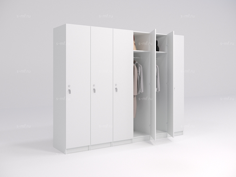 Односекционные шкафчики наиболее удобны для посетителей. Просторное внутреннее пространство создает максимальный комфорт при использовании. Такие модели чаще всего устанавливают в просторных раздевалках. Удобная опция - скамья с подставкой.