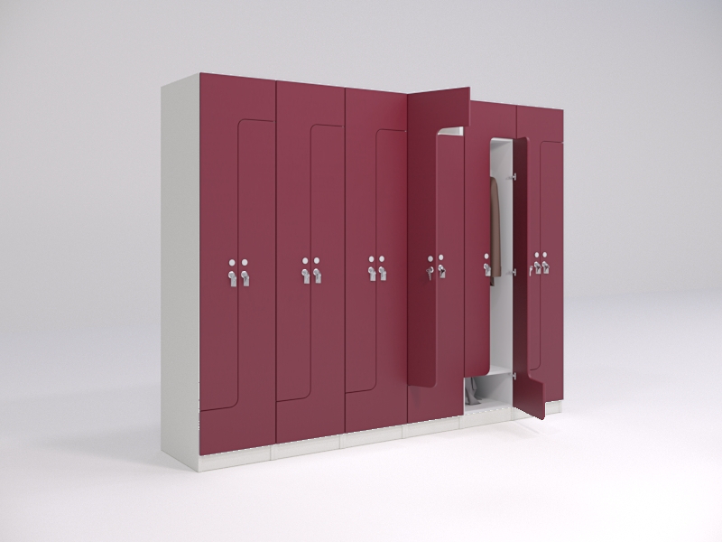 Z-образные шкафчики "Финн" сочетают в себе компактные размеры и удобную высоту 1-секционных моделей. Благодаря необычной форме фасадов и использованию различных цветовых решений, можно добиться интересного эффекта в гардеробной зоне. Удобная опция - скамья с подставкой.