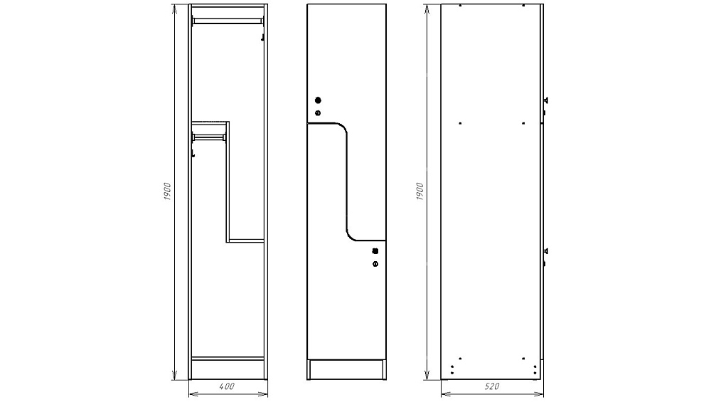 - штанга для вешалок и двойной крючок внутри шкафчика