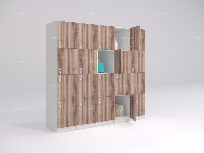 Шкафчики-сумочницы - это универсальная мебель для хранения обуви, головных уборов, спецодежды, сумок и других личных вещей. Шкафчики на 4 секции широко применяются в гипермаркетах, фитнес клубах, бизнес центрах, универсамах, раздевалках для персонала. Есть возможность фотопечати прямо на изделиях, нанесения логотипов, любых изображений, номеров.