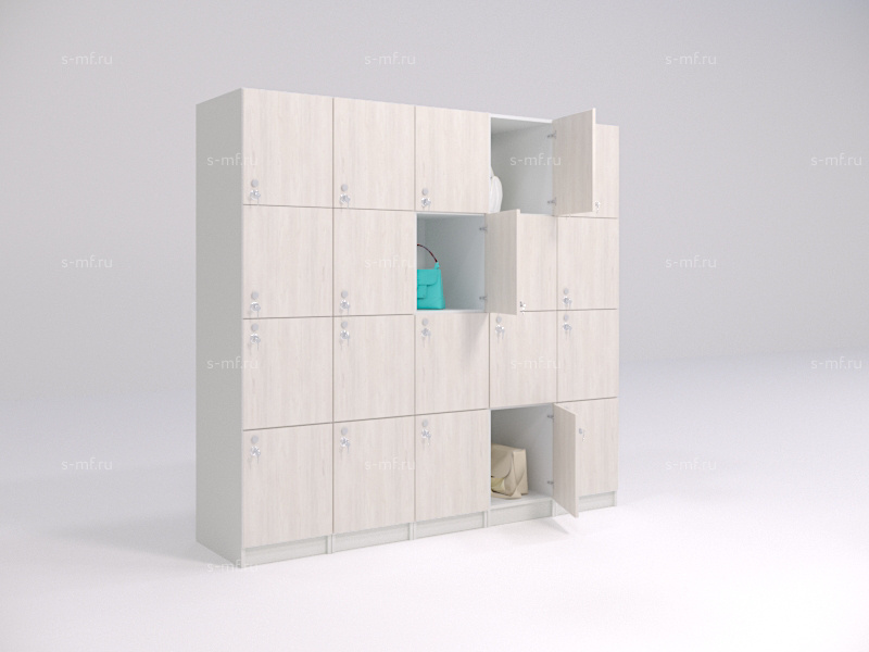 Шкафчики-сумочницы - это универсальная мебель для хранения обуви, головных уборов, спецодежды, сумок и других личных вещей. Шкафчики на 4 секции широко применяются в гипермаркетах, фитнес клубах, бизнес центрах, универсамах, раздевалках для персонала. Есть возможность фотопечати прямо на изделиях, нанесения логотипов, любых изображений, номеров.