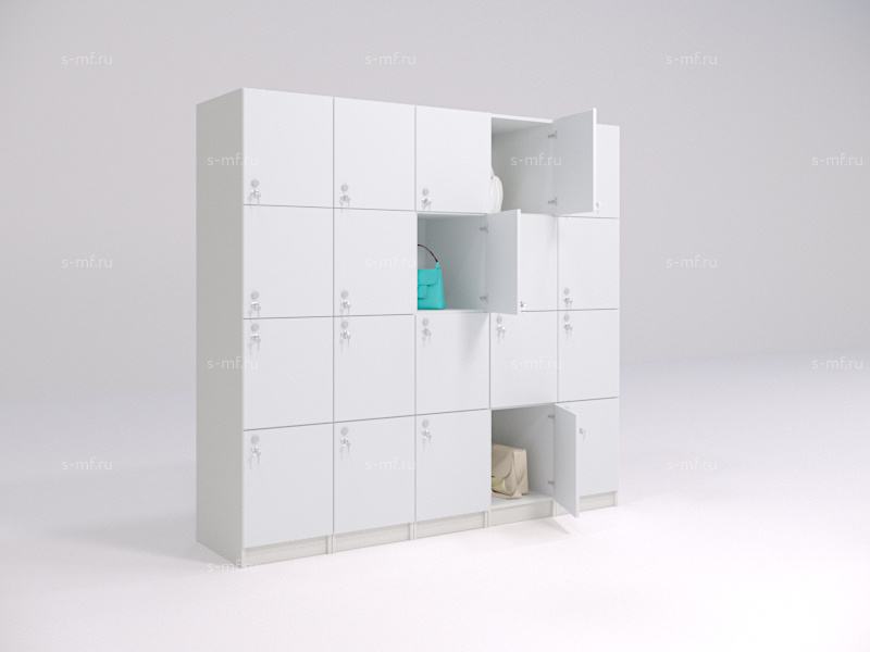 Шкафчики-сумочницы - это универсальная мебель для хранения обуви, головных уборов, спецодежды, сумок и других личных вещей. Шкафчики на 4 секции широко применяются в гипермаркетах, фитнес клубах, бизнес центрах, универсамах, раздевалках для персонала. Есть возможность фотопечати прямо на изделиях, нанесения логотипов, любых изображений, номеров.