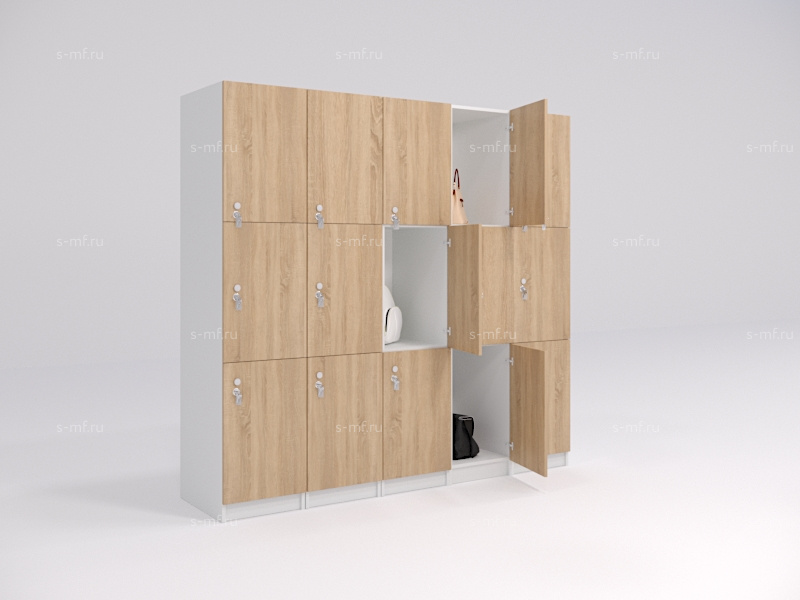 Шкафчики на 3 секции обеспечивают максимальную вместимость на небольшой площади. Предназначены для хранения малогабаритных личных вещей, сменной одежды и спецодежды. Благодаря нескольким секциям, есть возможность создавать интересные интерьерные решения и эффекты, подбирая разные цвета и фактуры - например глянцевые фасады в сочетании с матовыми или гладкие фасады в сочетании с рельефными.