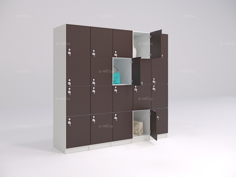 Шкафчики-сумочницы - это универсальная мебель для хранения обуви, головных уборов, спецодежды, сумок и других личных вещей. Шкафчики на 4 секции широко применяются в гипермаркетах, фитнес клубах, бизнес центрах, универсамах, раздевалках для персонала. Есть возможность фотопечати прямо на изделиях, нанесения логотипов, любых изображений, номеров.