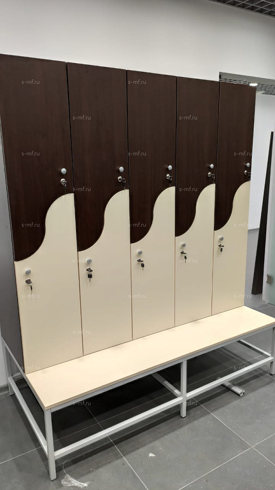 S-образные шкафчики - это удобный вариант 2-секционных моделей, они помогут сэкономить пространство в зоне раздевалки и обеспечить наибольшую вместимость мест на небольшой площади. Шкафчики имеют полки для хранения личных вещей, сумок, головных уборов, а также штанги для вешалок. Оригинальность формы фасадов сделает любое пространство еще более привлекательным.