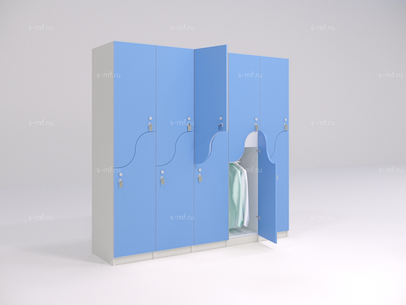 S-образные шкафчики - это удобный вариант 2-секционных моделей, они помогут сэкономить пространство в зоне раздевалки и обеспечить наибольшую вместимость мест на небольшой площади. Шкафчики имеют полки для хранения личных вещей, сумок, головных уборов, а также штанги для вешалок. Оригинальность формы фасадов сделает любое пространство еще более привлекательным.