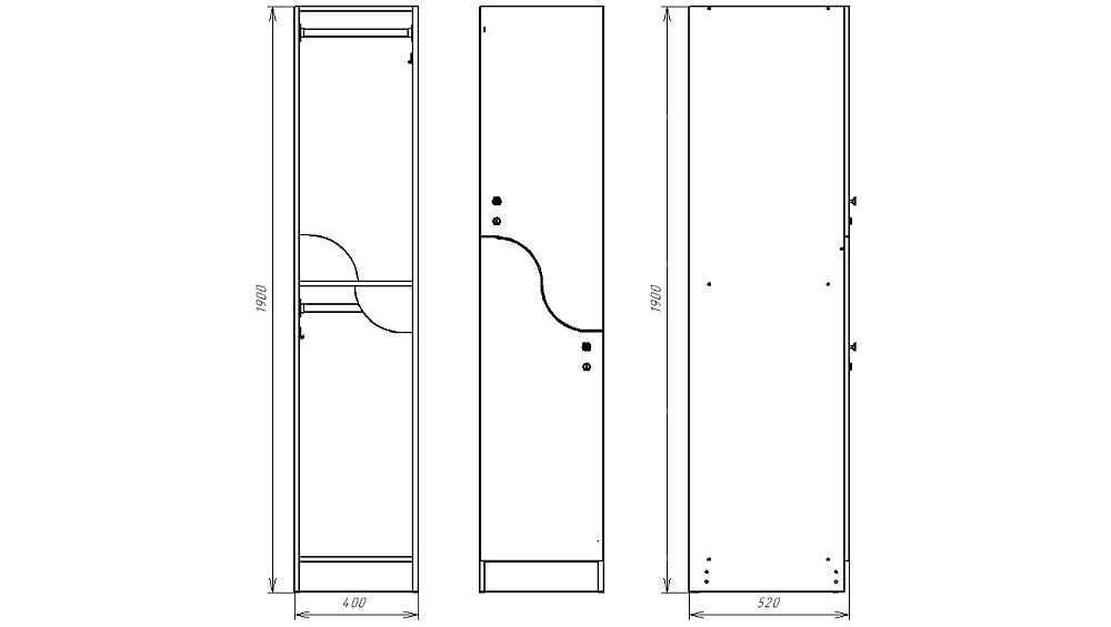 - штанга для вешалок и двойной крючок внутри шкафчика