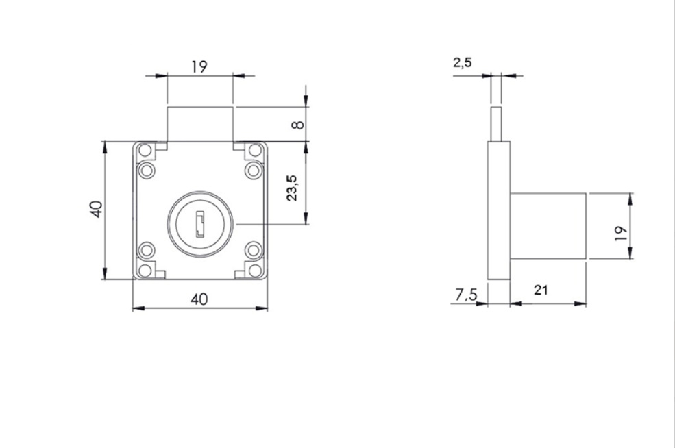 Замок мебельный d19х22мм №138, хром, крепление 4 шурупа + ответная планка