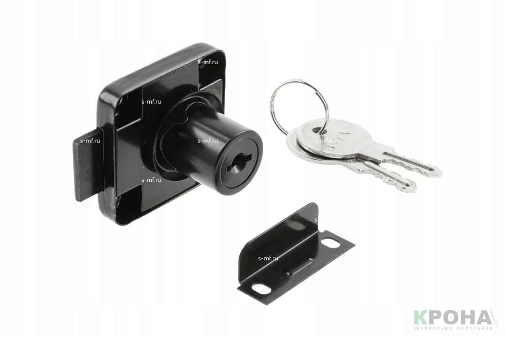 Замок мебельный №138 с планкой, простой (металлический) ключ, черный